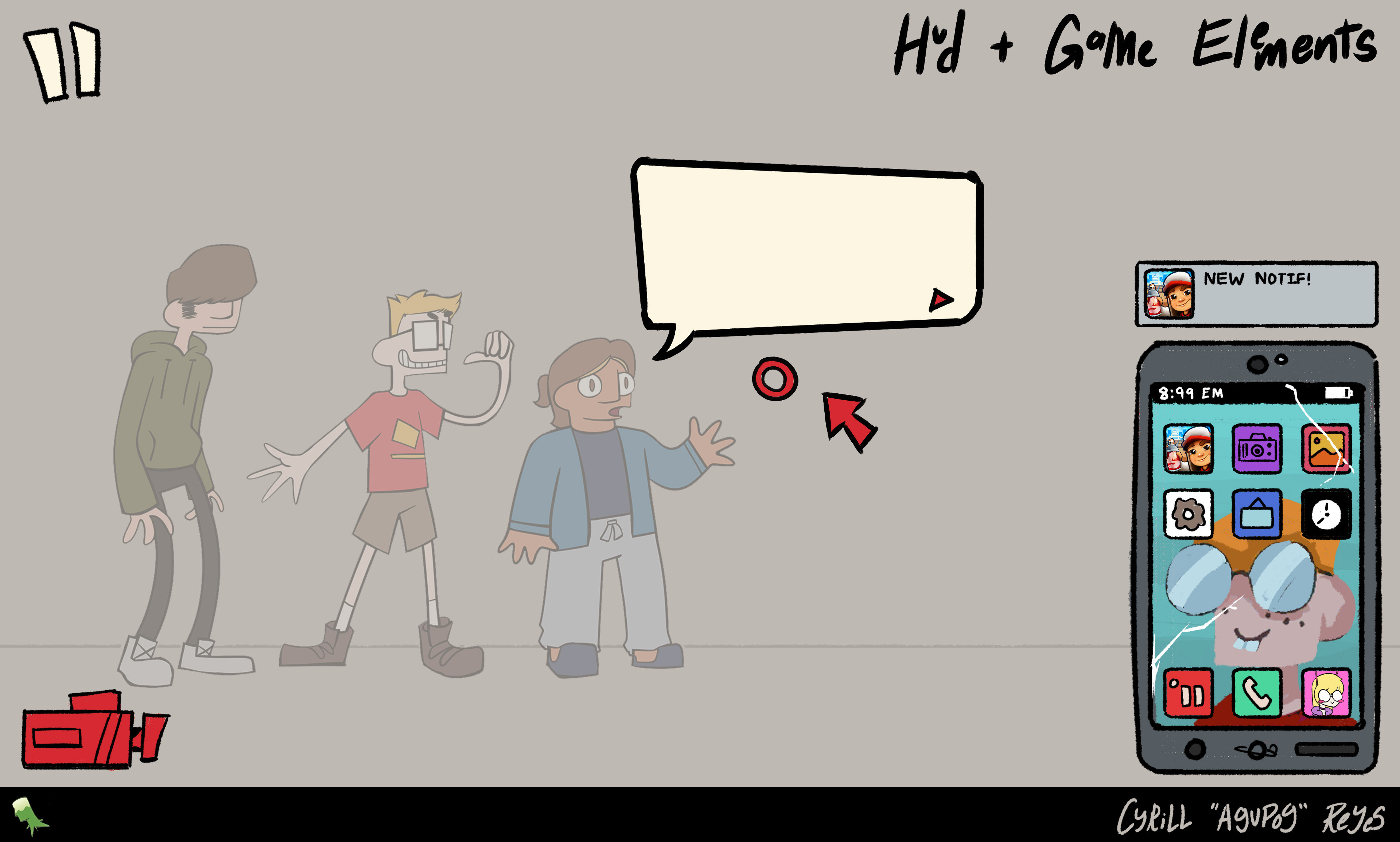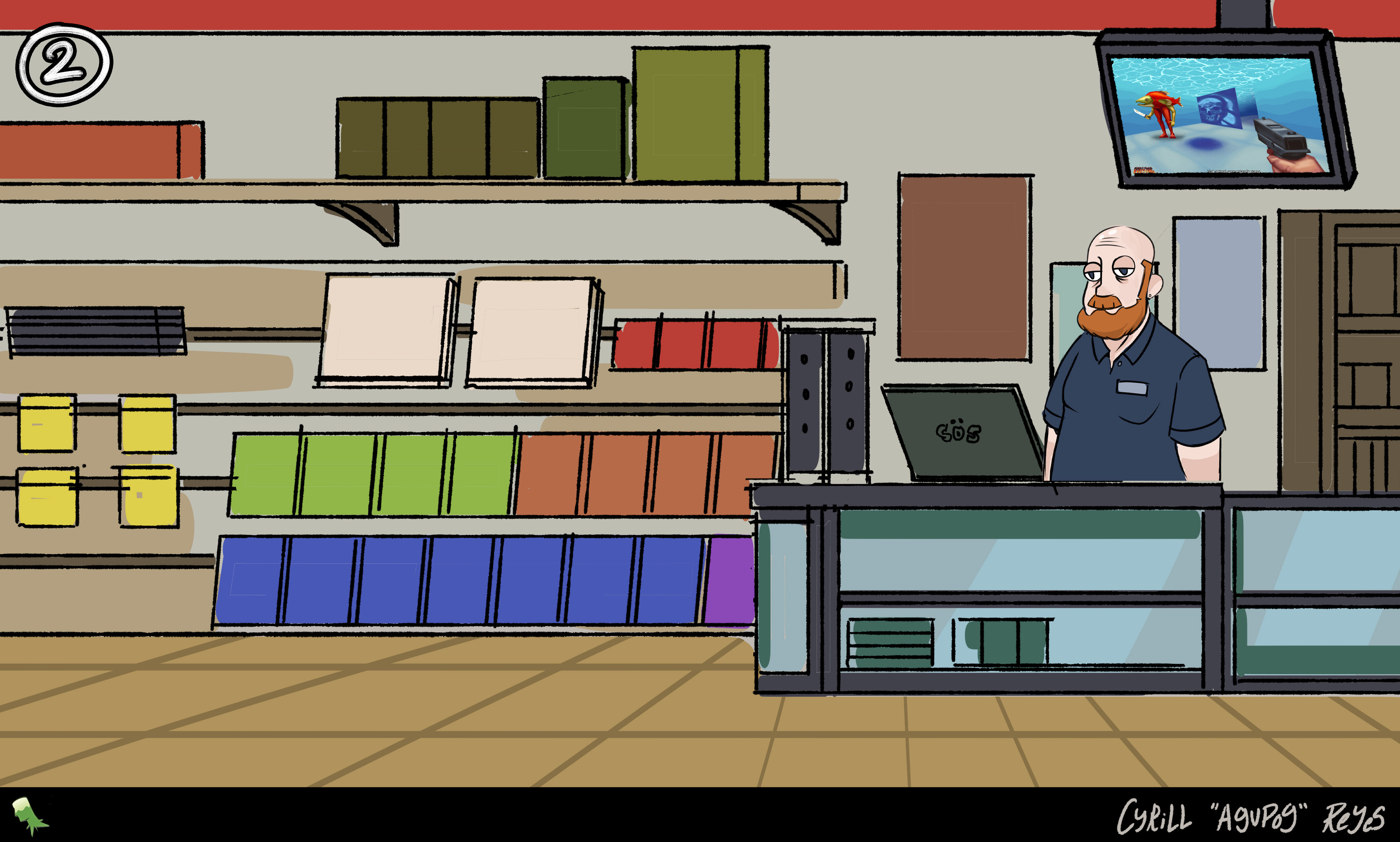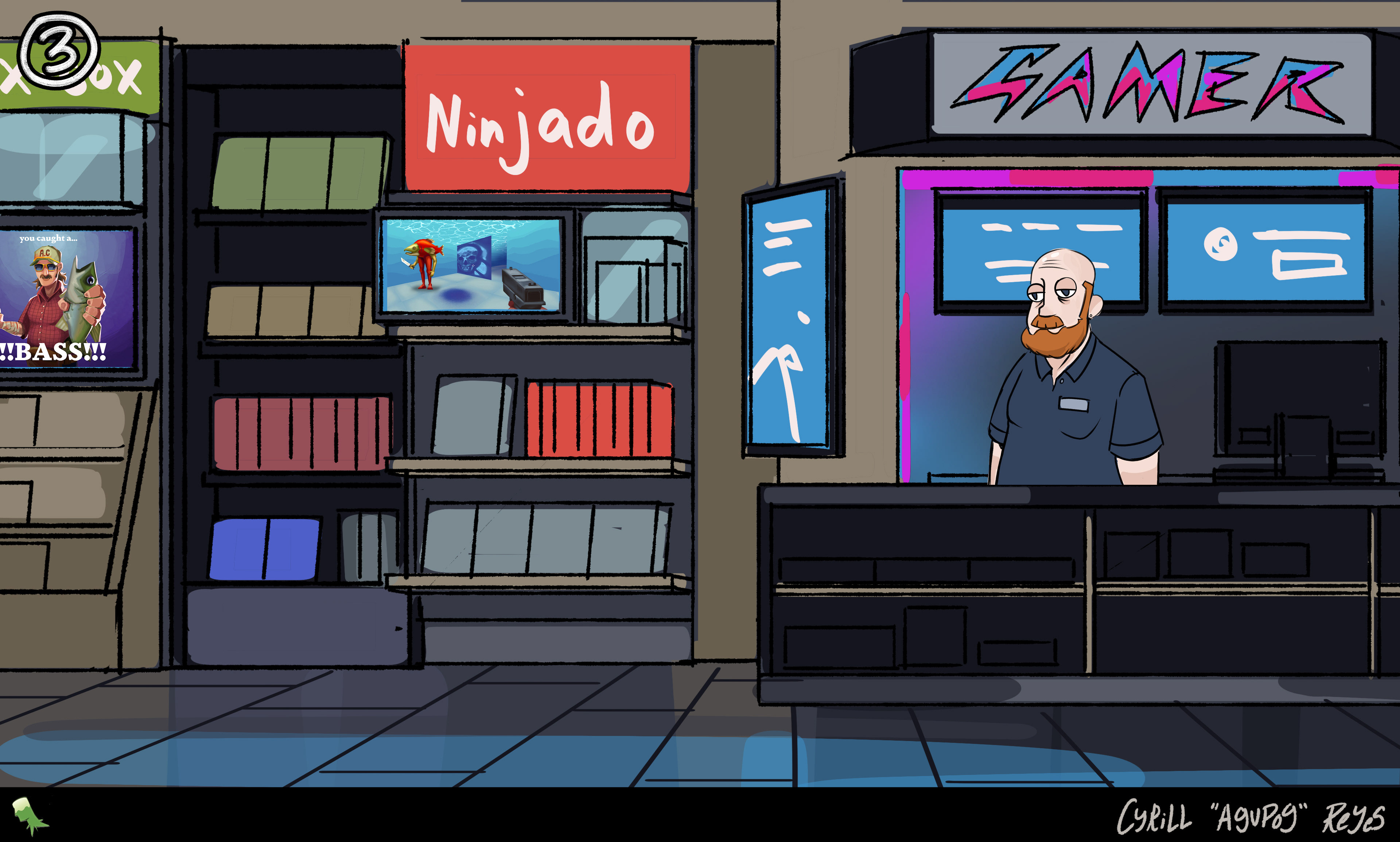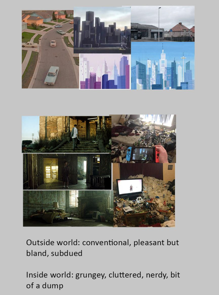 As a background artist still working with Turning Green Productions, I've been tasked with creating three different views of the living room in its run-down state while decorating it with pop culture and game references that speak to the trio's interests in internet culture.
