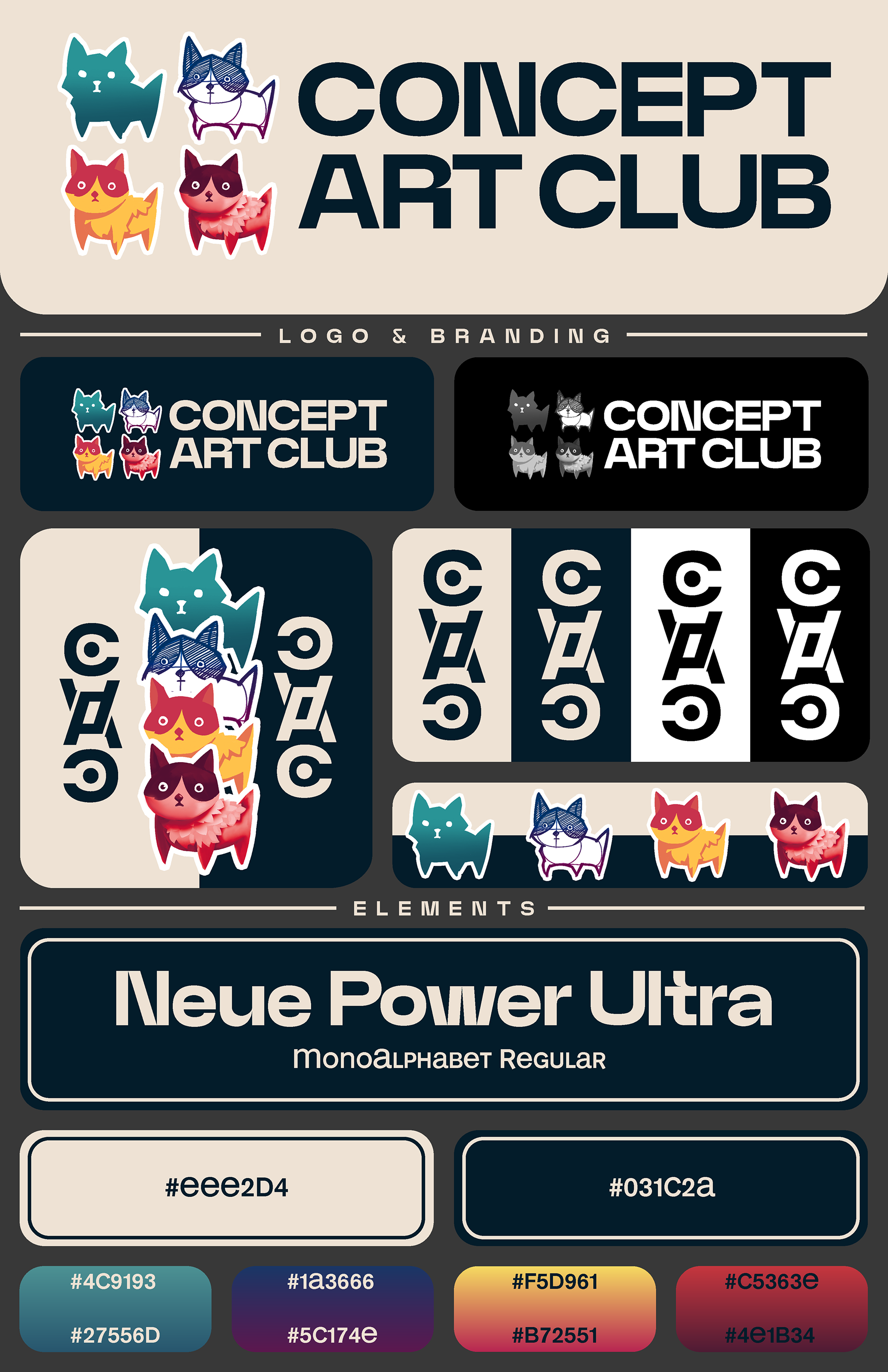 This section highlights the graphic design/vector work that doesn't fit into any section but highlights more design skills from style sheets for future use, posters for events, to logo iterations. This section shows a combination of illustration, photoshop, illustrator, and typography skills together to create cohesive and striking imagery.
